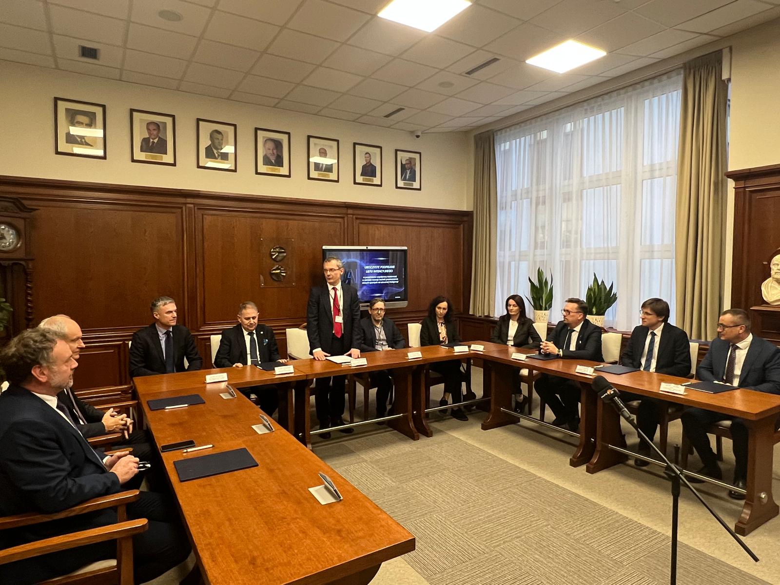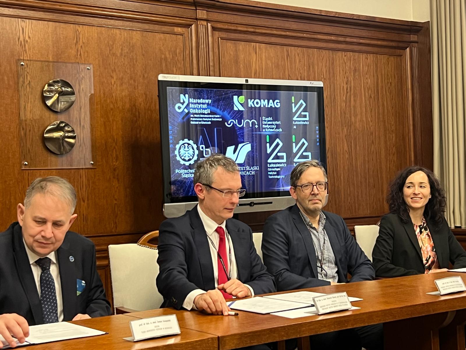 Dnia 24 listopada 2025 Dyrektor Dariusz Prostański oraz Zastępca Dyrektora Bartosz Polnik wzięli udział w spotkaniu w Narodowym Instytucie Onkologii w Gliwicach, podczas którego podpisany został list intencyjny dotyczący współpracy badawczej w zakresie wykorzystania sztucznej inteligencji w działaniach na rzecz medycyny.